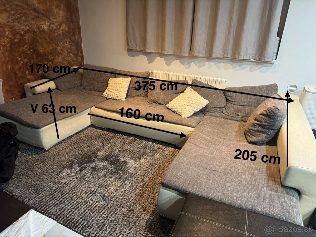 Rozmer cca 375 cm x 205 cm x 63 cm.