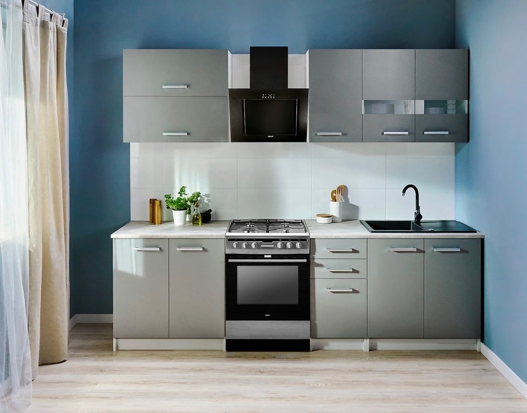 Nová ,zabalená kuchynská linka v dĺžke 2m (vrch aj spodok ) v peknej modernej svetlosedej farbe ,nove,zábalene,v demonte ..