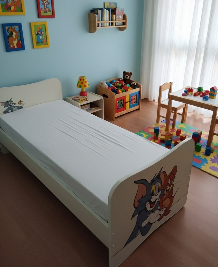 Posteľ v rozmere 80x180cm s roštom a veselým motívom Toma a Jerryho.