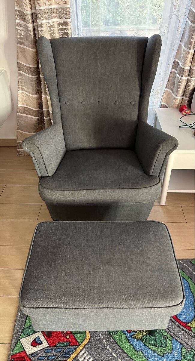 Strandmon kreslo a taburetka
