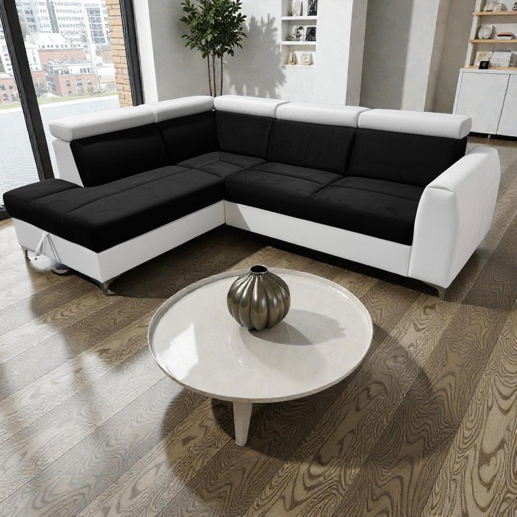 Moderná, kvalitná sedacia súprava JAZZ L - celočalúnená rohová štýlová sedačka v trendovom dizajne, ktorá uspokojí hlavne vyznavačov pohodlia a originálneho moderného interiéru. Sedacia súpravá je rozkladacia a s nastaviteľnými opierkami na hlavu, vo vnútri sedenia je vlnovcová pružina s kvalitnou PUR penou.