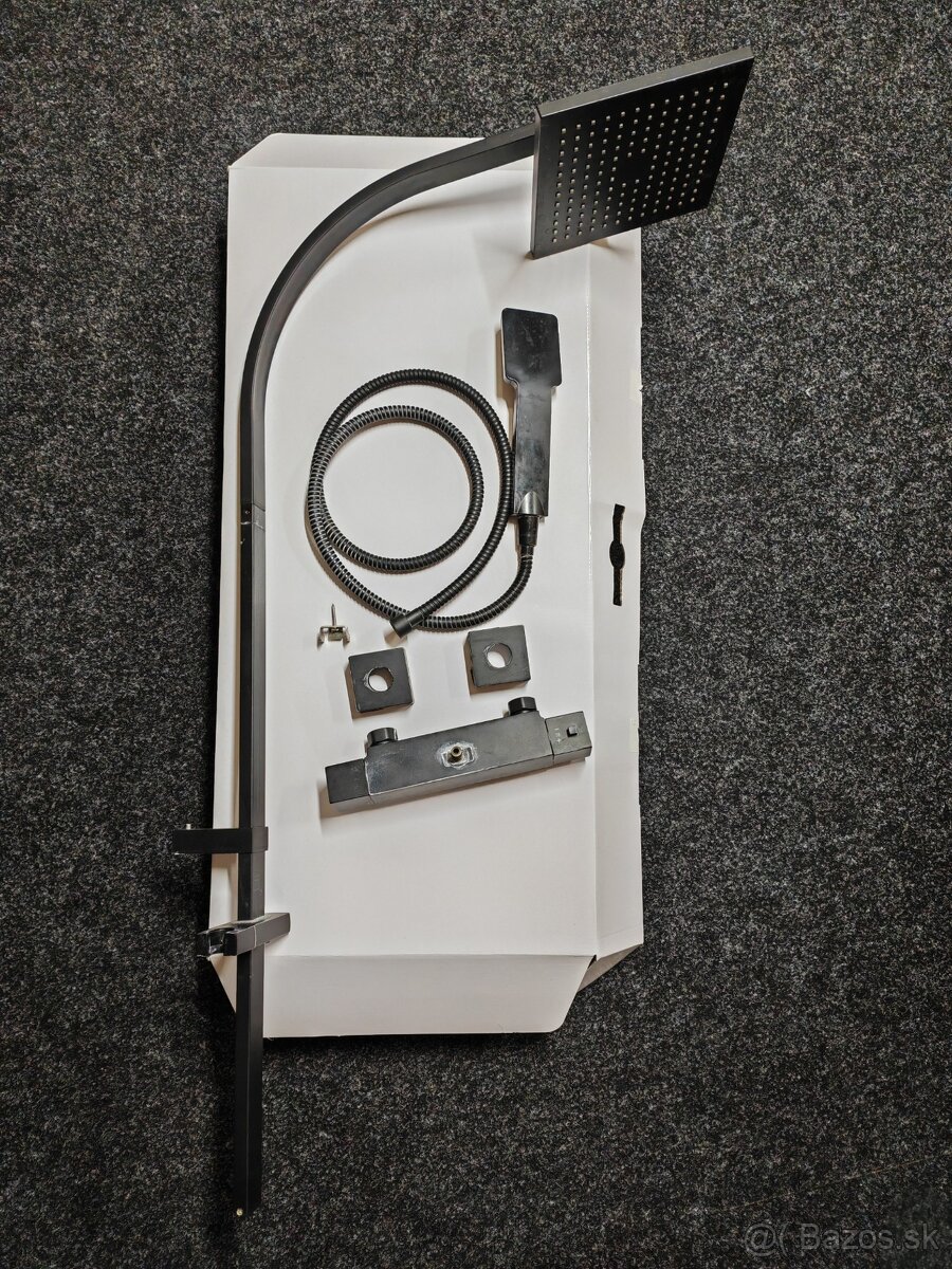 Predám sprchový set v čiernej matnej farbe s termostatickou sorchovacou batériou.