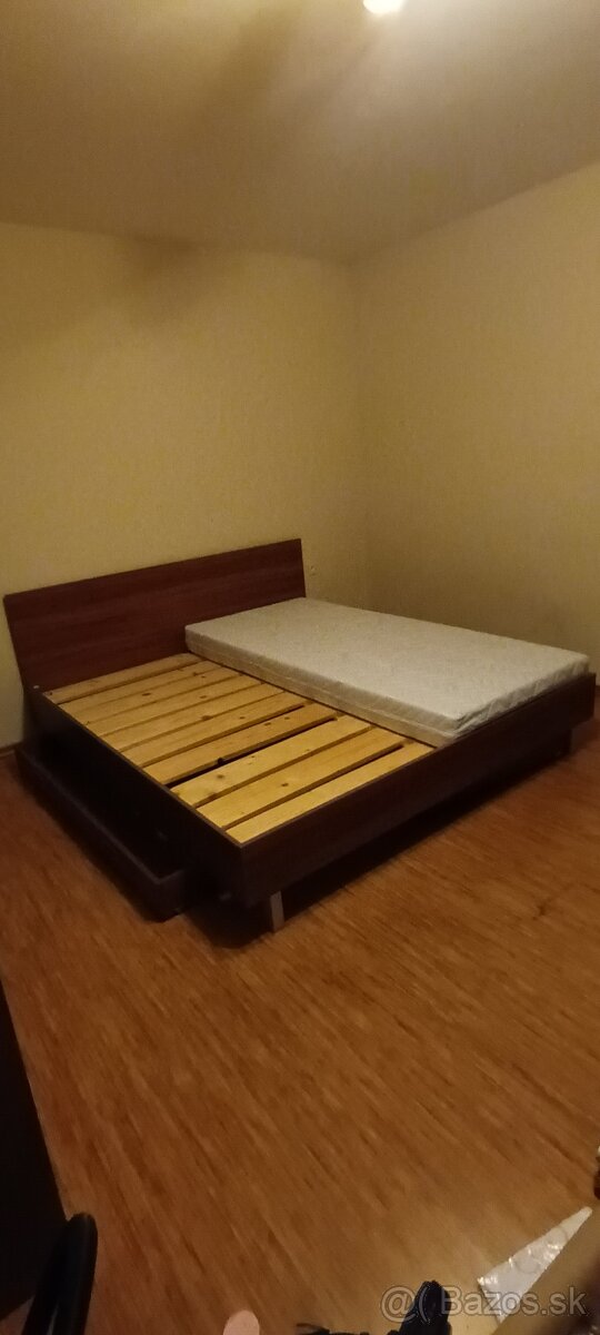 Predám staršiu manželskú posteľ vyrobenú na zákazku z drevotriesky (farba slivka) a rošty sú z masívu. Posteľ je pevná, vhodná aj pre ťažšie osoby. Len osobný odber.