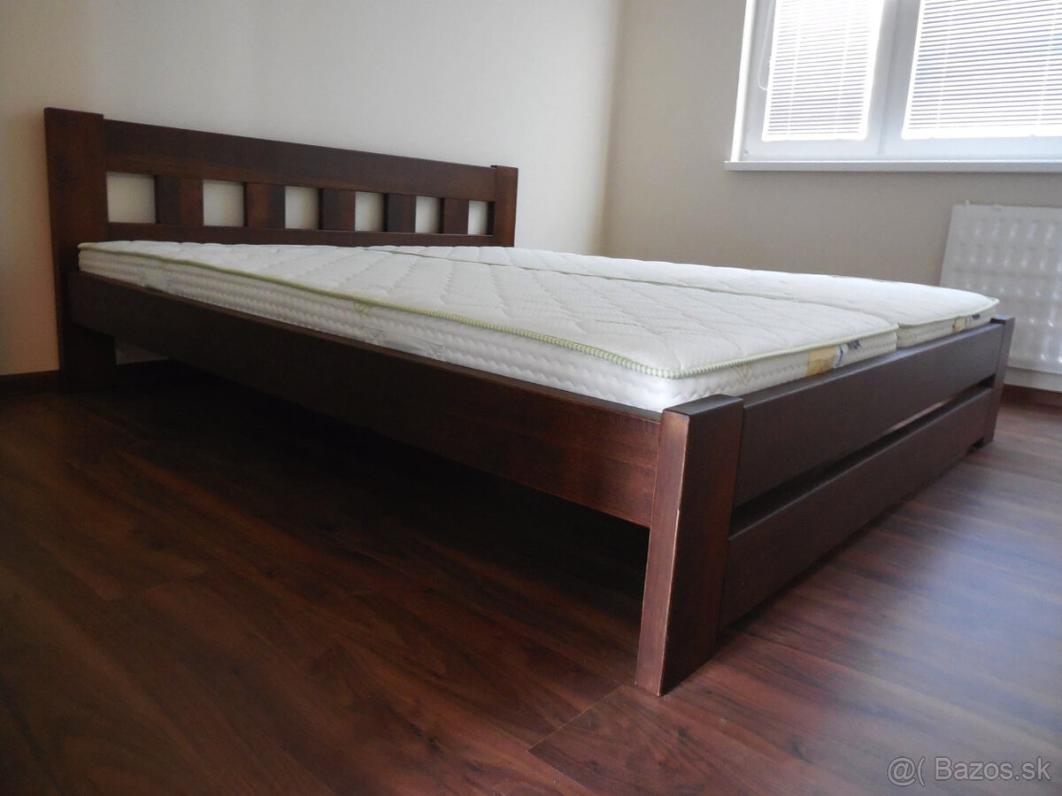 Dubová masívna výškovo nastaviteľná manželská posteľ 160 x 200 vo veľmi dobrom stave, pevná. Kvalitný spojovací material a kovanie zn. Franko - Je vyrobený z kovu - ocele, pre zabezpečenie stability a pevnosti tz dlhá životnosť.. Používa sa na nábytkové spoje, ktoré umožňujú jednoduchú montáž a demontáž. Posteľ je výškovo nastaviteľná + - 15cm. Cena 190e s možnosťou kapsulového matraca za 60e, výška matraca 18cm. Cena spolu s matracmi 250e. Pôvodná cena postele s matracmi bola 1 300e. Možnosť dopravy