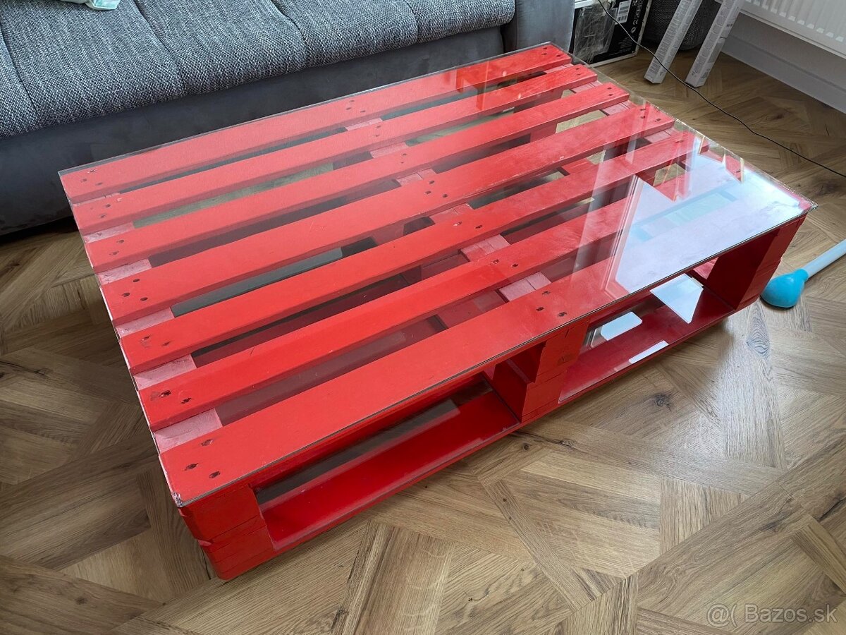 Palety sú vybrúsené ošetrené detským lakom a nafarbené na červeno.