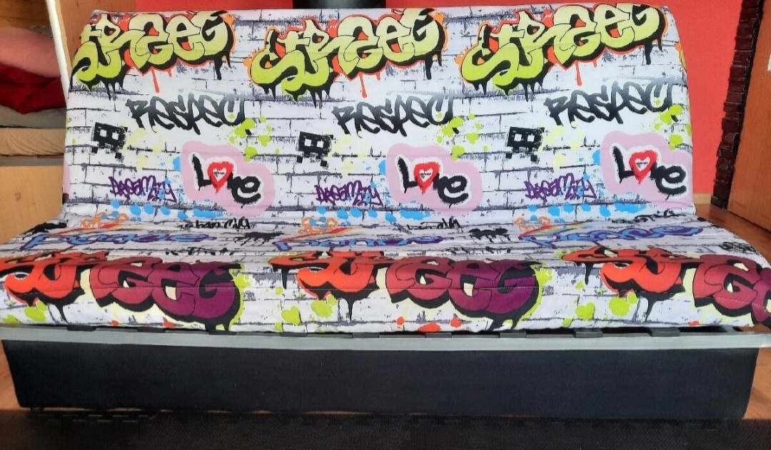 Gauč, pohovka, vhodná do detskej izby. Možnosť rozložiť, vhodné aj na spanie. Nepoškodený, vo veľmi dobrom stave. Úložný priestor.
