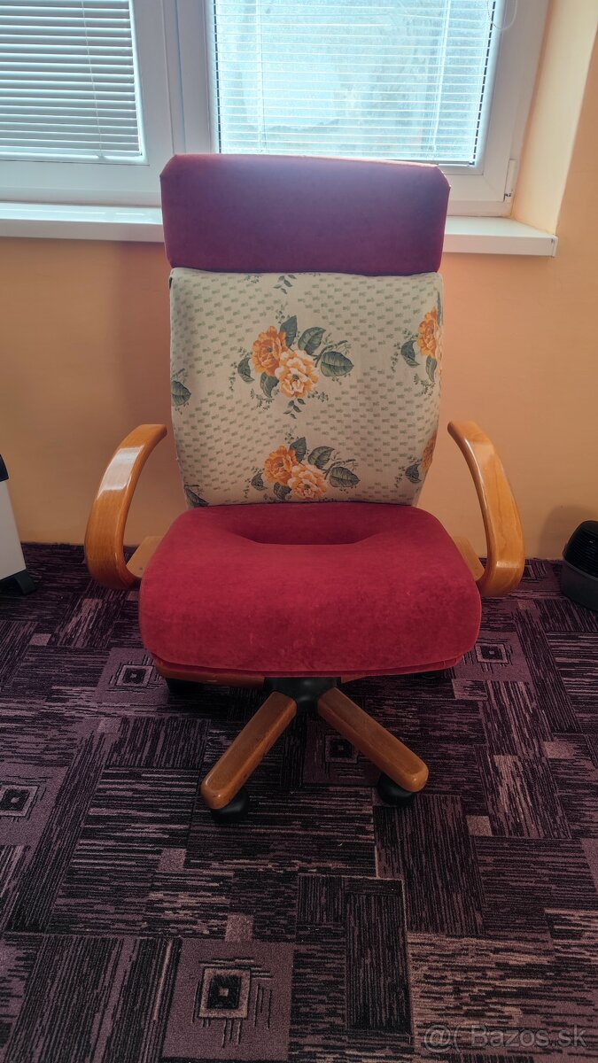 ✅ Predám kancelársku stoličku v červenej látke s drevenými rukoväťami.