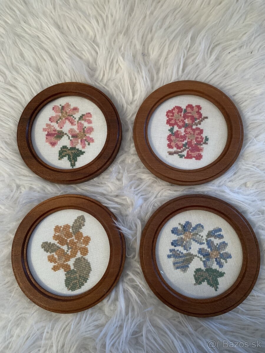 Predám tieto štyri okrúhle obrázky priemer je 11 cm.