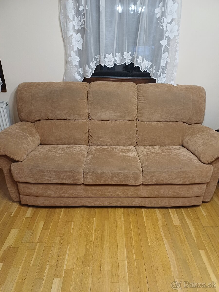 Predám sedaciu súpravu z mikroplyšu s teflónovou úpravou. Sedačka, kreslo a taburetka.