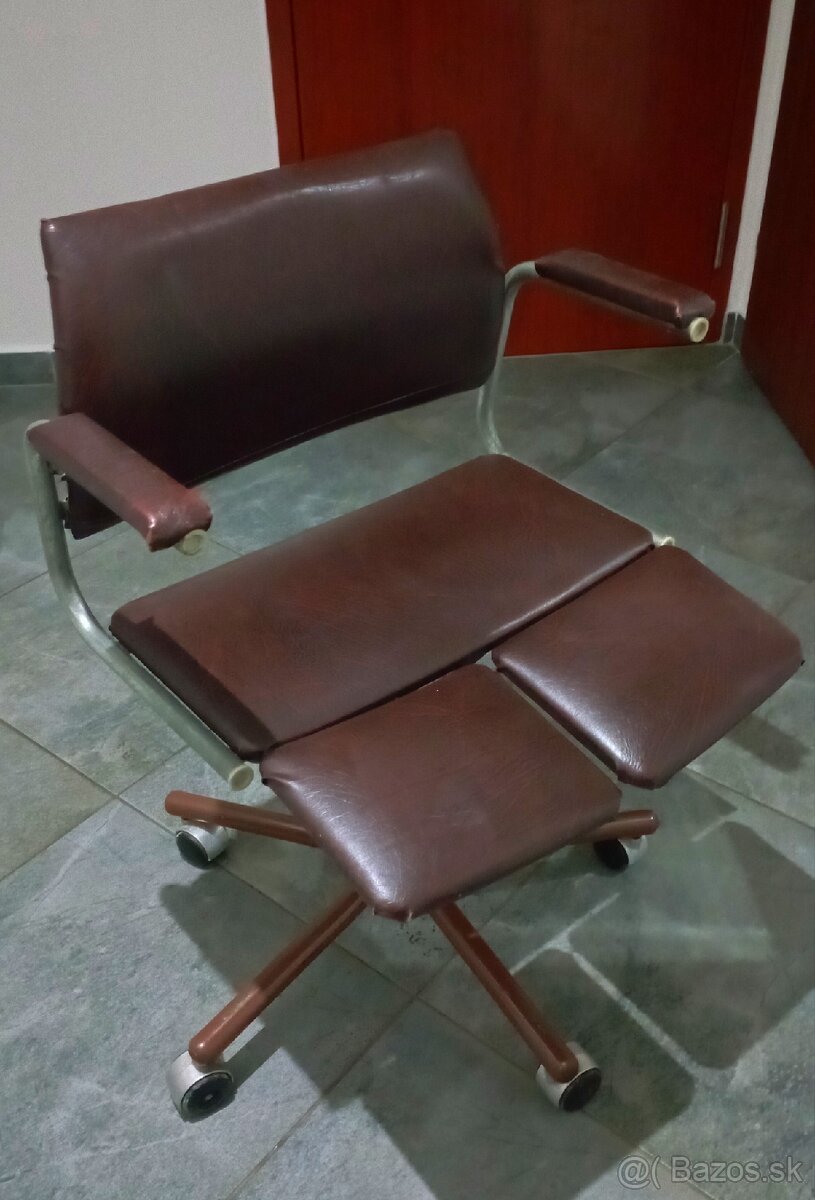 Predám staré retro kožené kreslo na kolieskach zo 70 rokov z ratitnym polohohovanim na nohy všetko funkčné kreslo je v stopercentnom stave iba osobný odber kontaktovať na email cena 15 eur