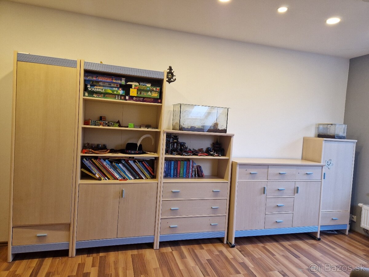 Predám detskú študentskú izbu. Pozostava z 4skriň, komody, lisacieho stolika, poličky a nočného stolíka.