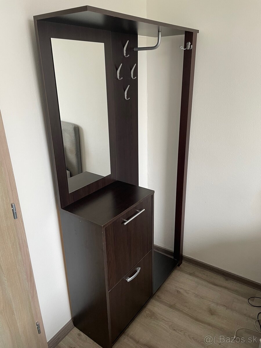 Predám nábytkovu zostavu do chodby. Cena 20€ za skriňu so zrkadlom a 5€ za botník. Nábytok je používaný ma aj nedostatky vidno na fotkách.