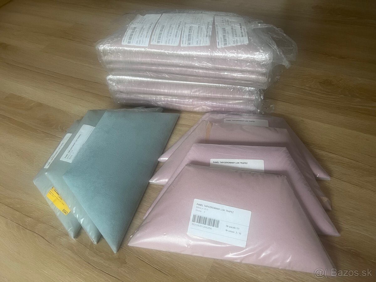 Predám nepoužité čalúnené panely za posteľ. 12ks ružových a 3 ks tyrkysových. Všetko spolu za 30eur.