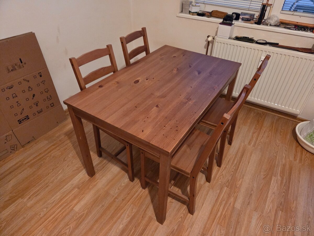 Kuchynsky stol + stolicky - [3.2. 2026]Predam kuchynsky stol+4stolicky,rozmer stola 80x140a vyska 75cm,stol v dobrom stave stolicky si treba podotahovat