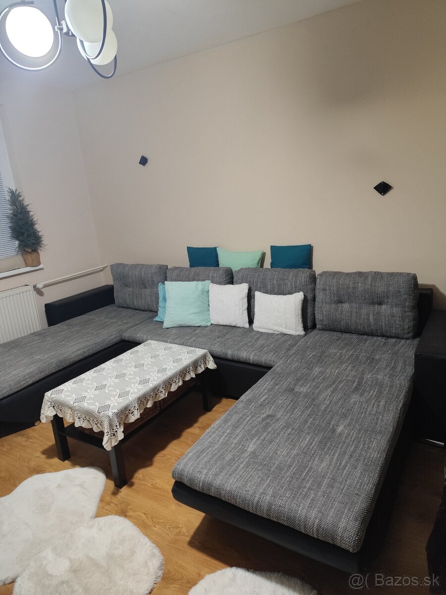 Čierna sedacia súprava tvaru U - [6.2. 2026]Predám rok používanú sedaciu súpravu tvaru U s priestorom na spanie a s úložnými priestormi. Šírka sedacej súpravy je 330 cm. Skladá sa z troch častí. Nachádza sa v bytovke na druhom poschodí. Odvoz je potrebné si zabezpečiť. Menšia dohoda na cene je možná.