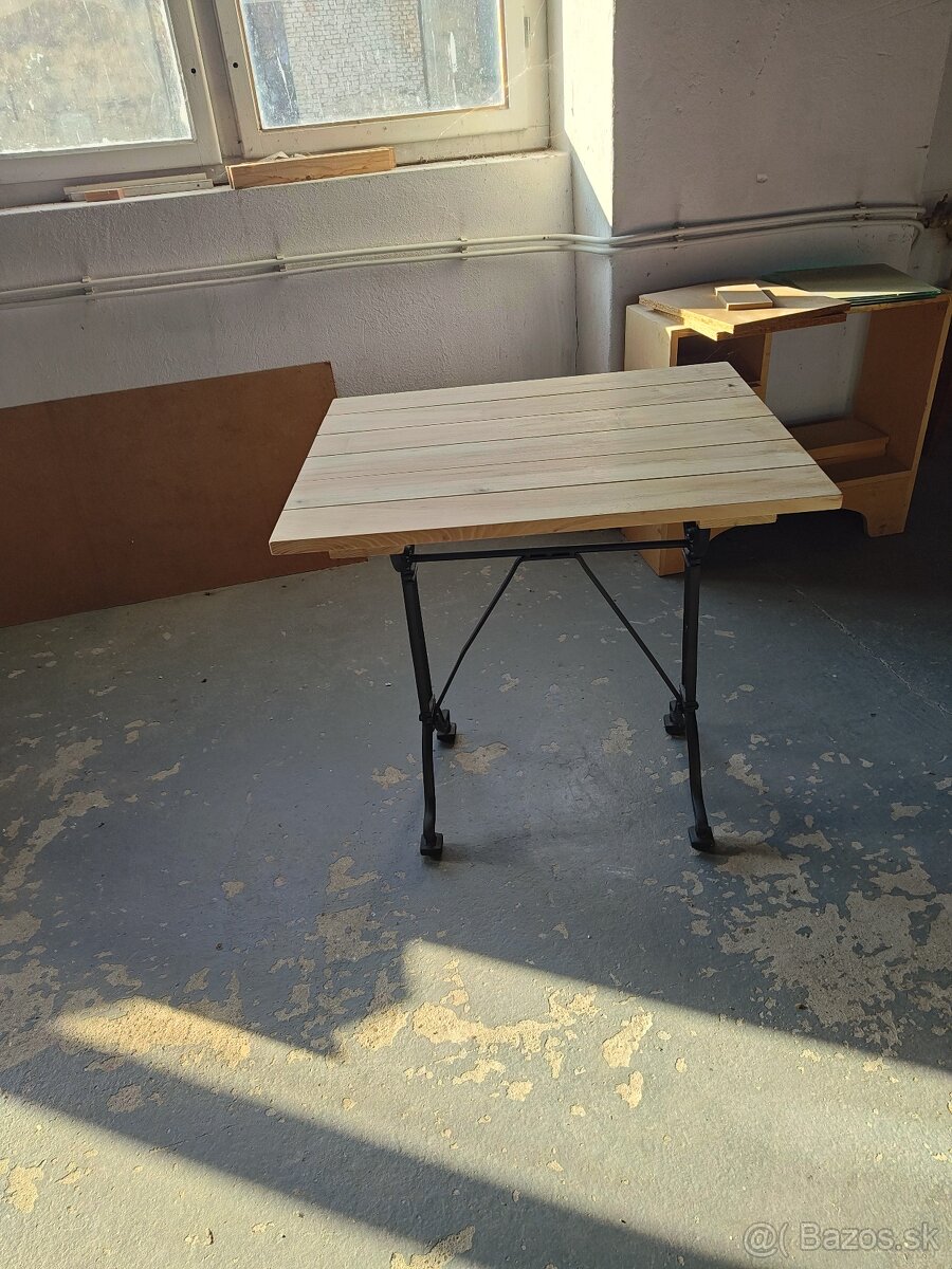 Predám stolík na terasu, balkón. Liatinová podnož a drevená agátová vrchná doska. Rozmery 75x62cm výška 73cm. Cena 45€