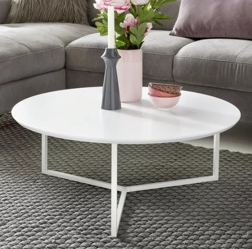 Predám používaný konferenčný stolík farba biela rozmery viď foto, materiál kompozitné drevo oceľová konštrukcia