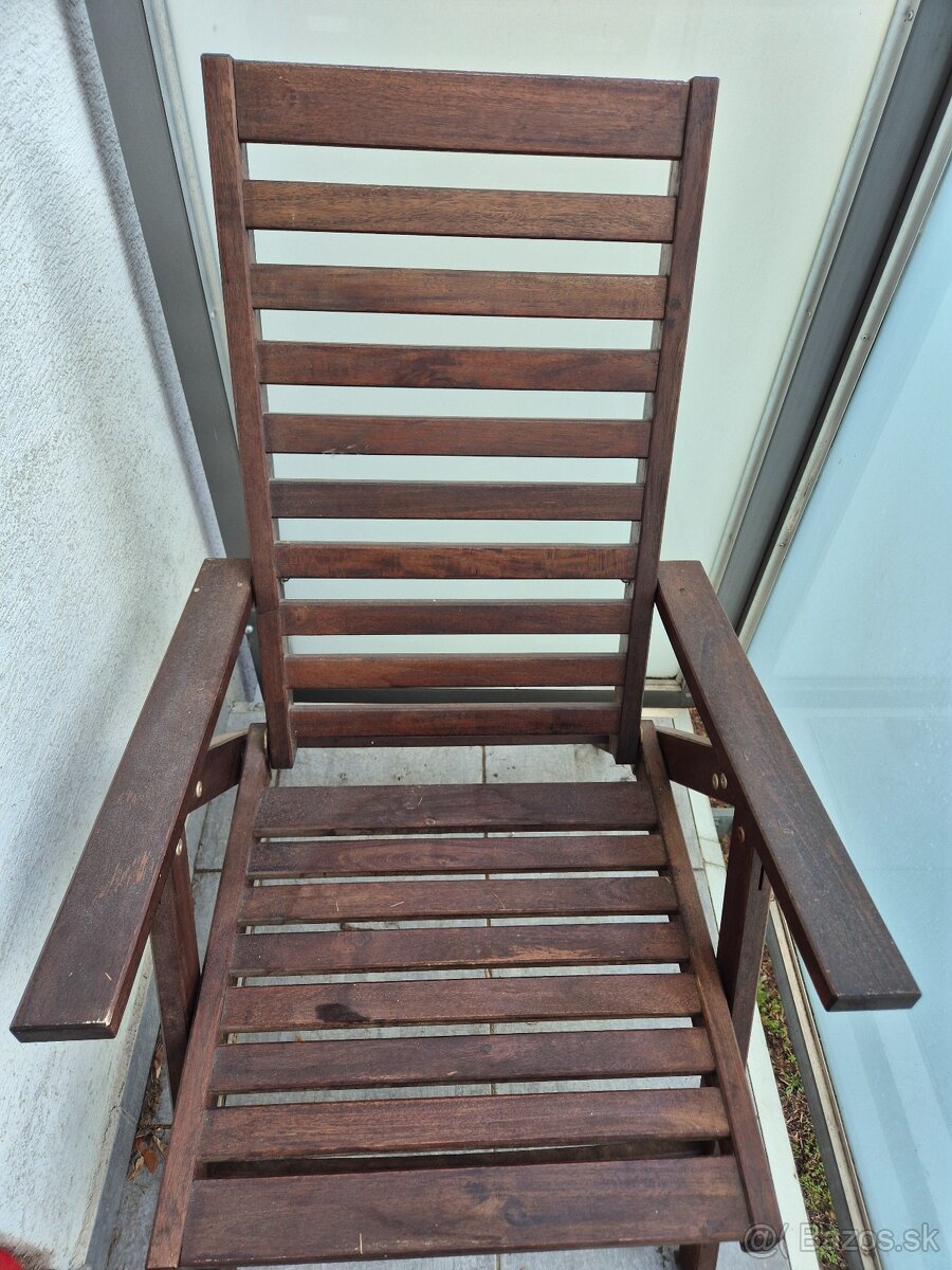 Predam 2ks polohovatelnych drevenych morenych zahradnych stoliciek Ikea (starsi model applaro).