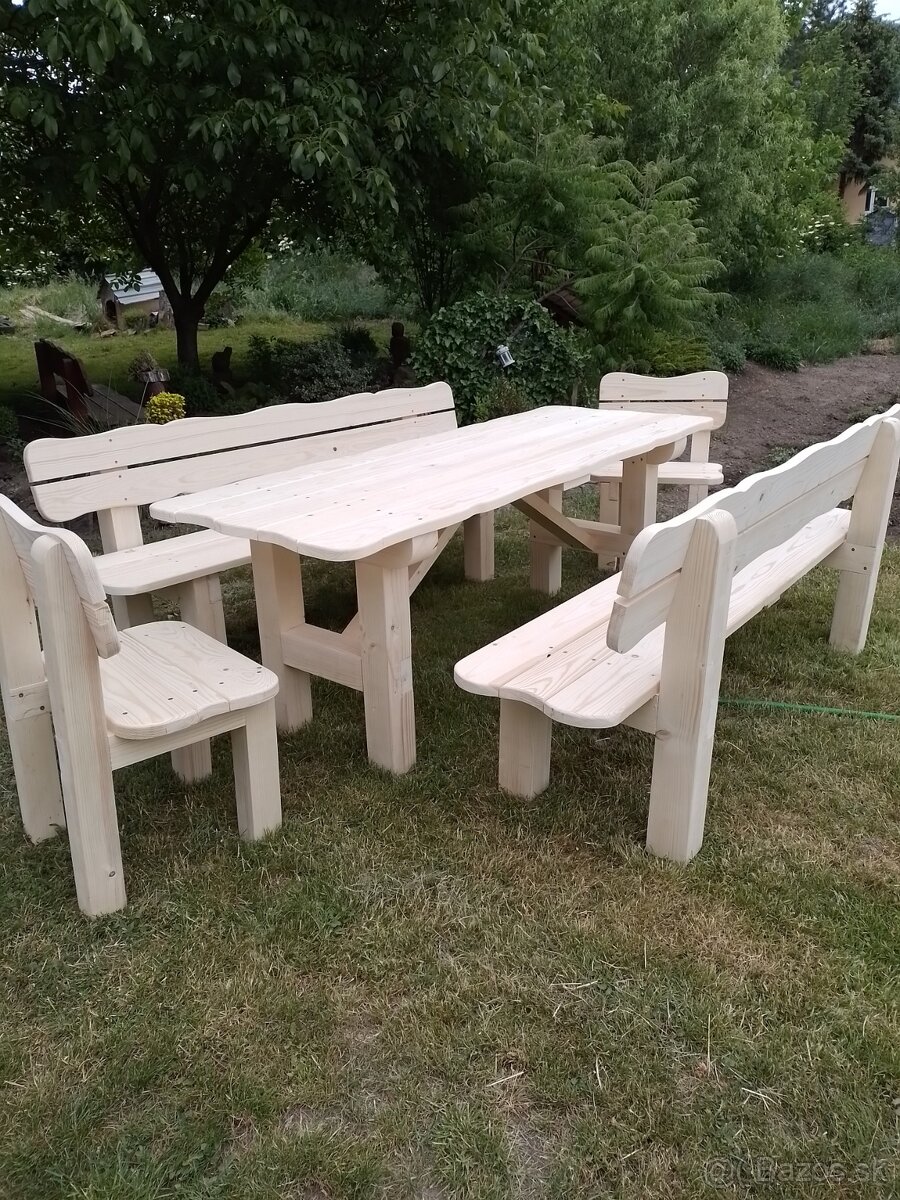 predam záhradný nábytok záhradné posedenie dĺžka stola a lavíc 2m 350eur so stoličkami 450eur zahradne sedenie je bez náteru