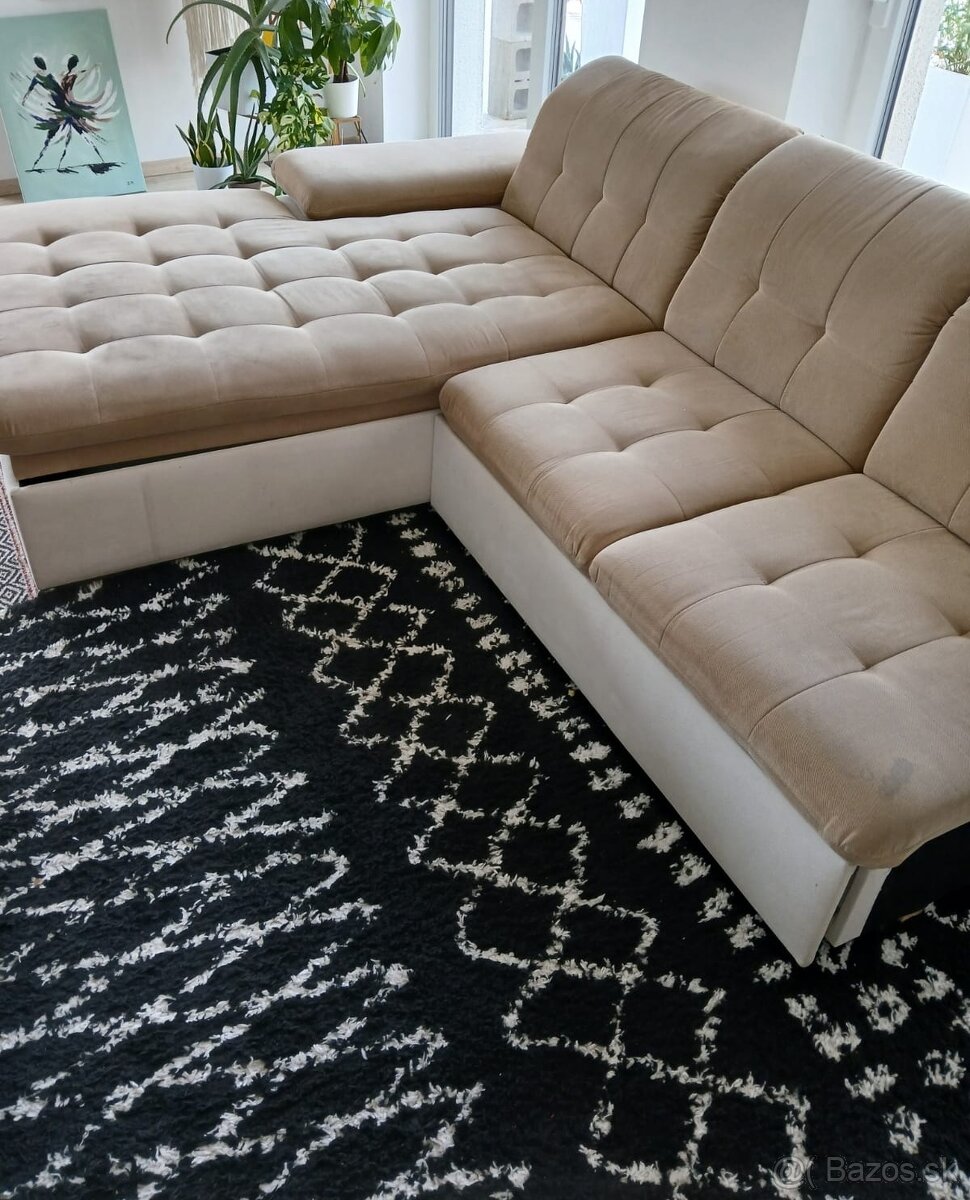 Rohová rozkladateľná sedačka - [8.2. 2026]Predám rozťahovaciu sedačku s úložným priestorom.