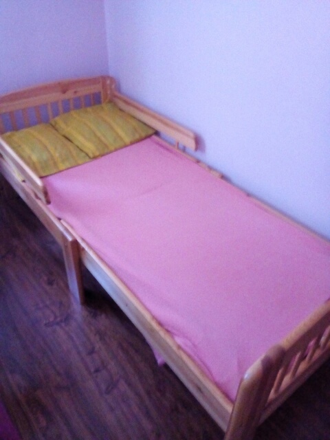 Napredaj roztahovacia drevena detsky postel.s zábranou..roštom+matrac. Šyrka:85cm.Je to nastavitelne na dlžku na:100cm. na 140cm a na 180cm.