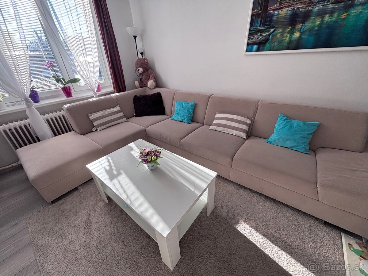 Predám 6 miestny gauč v tvare L, poskladaný na mieru. Nie je rozkladací.