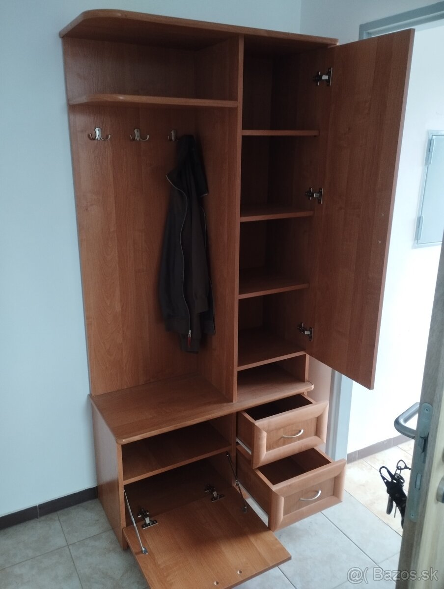 Predám "chodbovu" skriňu s vesiakmi, úložným priestorom a zrkadlom za 20€, treba si zabezpečiť odvoz, je v dobrom stave..