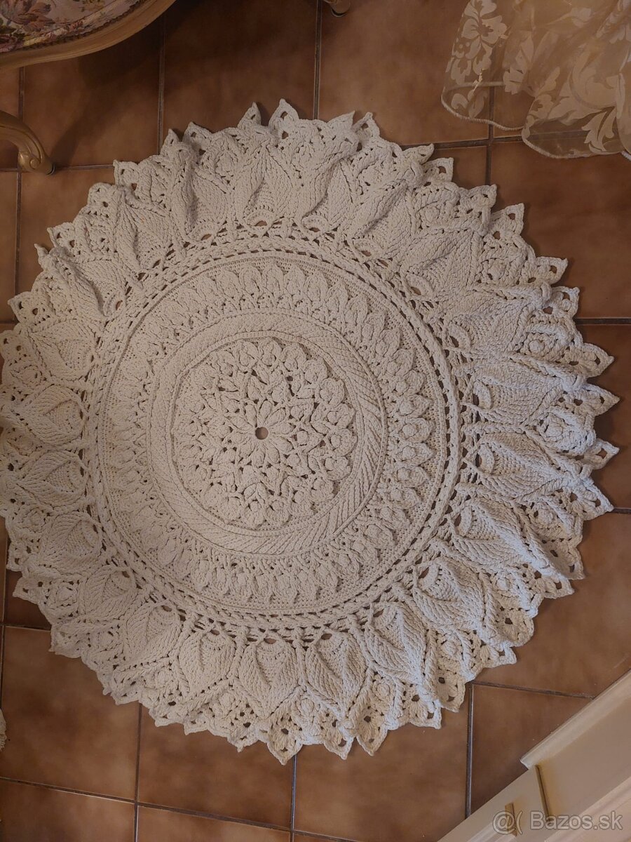 Ponúkam na predaj krásny biely háčkovaný koberec z hrubej bavlnenej priadze.
