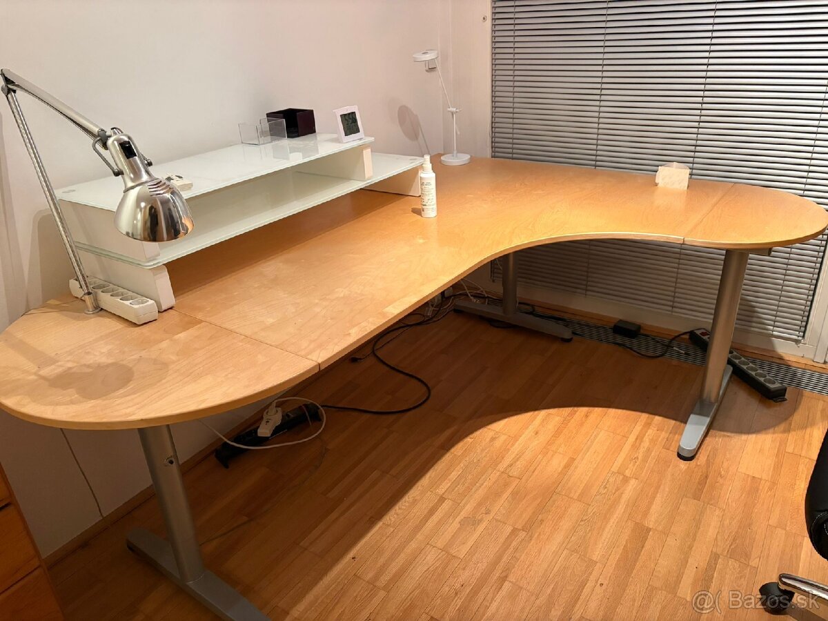 Pracovisko zo 4 stolov / pisaci / kancelarsky stol - [10.2. 2026]Predam velke stoly zlozene z dvoch stolov pre dvoch ludi. Jeden stol je urceny pre dvoch. Dva spojene stoly su pre styroch ludi, ale mozu stat aj samostatne. Sirka jedneho dvojstola stola 3,4 metra, hlbka 80 cm, vyska 74 cm. Ku kazdemu dvojstolu su 2 zasuvkove kontajnery s dvomi zasuvkami a dvomi vn ...