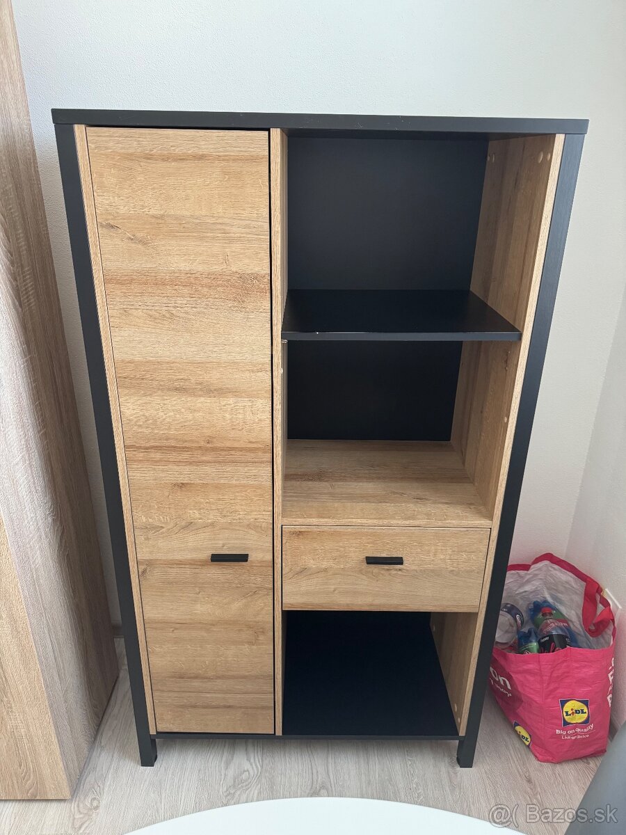 Predám kvalitnú skrinku. Používaná bola asi rok a pol. Mierne známky používania na poličke - viď foto. Rozmery 86x40x151 cm.