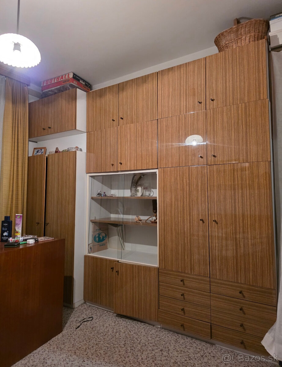Za odvoz ponúkam nábytkovú zostavu. Výška 227cm, celková šírka 270cm (na šírku sa dá rozdeliť na 3 časti a rôzne kombinovať. Hlbšia skriňa vľavo (hĺbka 60cm) je na vešanie, ostatné (hĺbka 45cm) sú policové.