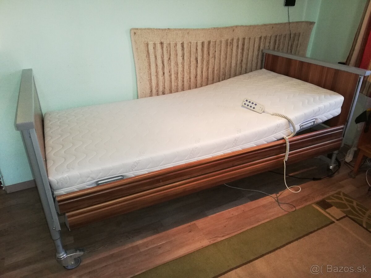 Predám málo používanú elektrickú polohovateľnú posteľ Bock Domiflex II.+matrac.Elektrická polohovacia posteľ s diaľkovým ovládaním umožňuje pohodlné nastavenie polohy hlavy, trupu aj končatín. Robustná konštrukcia s nosnosťou do 170 kg, má kolieska s brzdami, bezpečnostné prvky.Možnosť prepravy v rámci okresu.