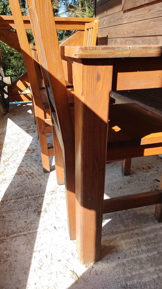 Predám masívny stôl vhodný napríklad do altánku. V cene sú 4 stoličky. Set je v dobrom stave, má bežné známky používania. Je nutné zabezpečiť si odvoz. Nachádza sa na Rakovej. Rozmery stola sú -Dĺžka 200, šírka 81, výška 75. Dohoda na cene možná.Kontaktovať prosím na mail jarabek9@gmail.com