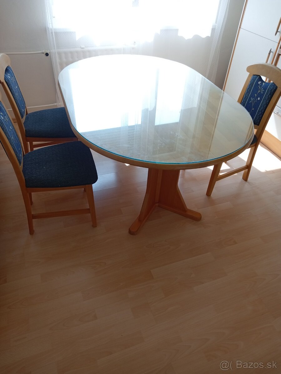 Predám tento pevný,veľký stôl z masívu. Je z tvrdého dreva. Sú k nemu iba 3 stoličky. Na stôl je aj sklo. Rozmery sú na fotkách. Po dohode možnosť dovozu. Pozri aj moje ďalšie inzeráty.