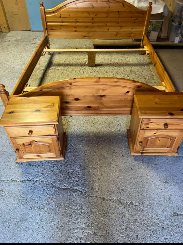 Predám manželské posteľe z masívu v dobrom stave. Rozmer 180×200.K posteli sú dva nočné stolíky. Predáva sa bez roštou a matracou. Mám 5 kusou. Po dohode možnosť dovozu.cena je za jednu posteľ a dva nočné stolíky.