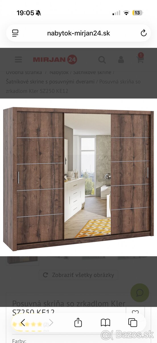 satnikova skrina s osvetlenim 260x260x60 - [9.2. 2026]predam kvalitnu velku satnikovu skrinu s posuvnymi dverami a bodovym osvetlenim