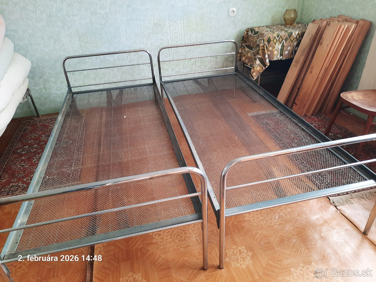 Predám zachovalé 2ks kovové postele so sieťovým roštom 195x85cm výška 35/65cm, za 40€. 1ks kovovú posteľ 195x85 výška 35/65 plochý plechový rošt za 10€, 1ks kovová detska postieľka 140x65, výška 35/70 za 5€