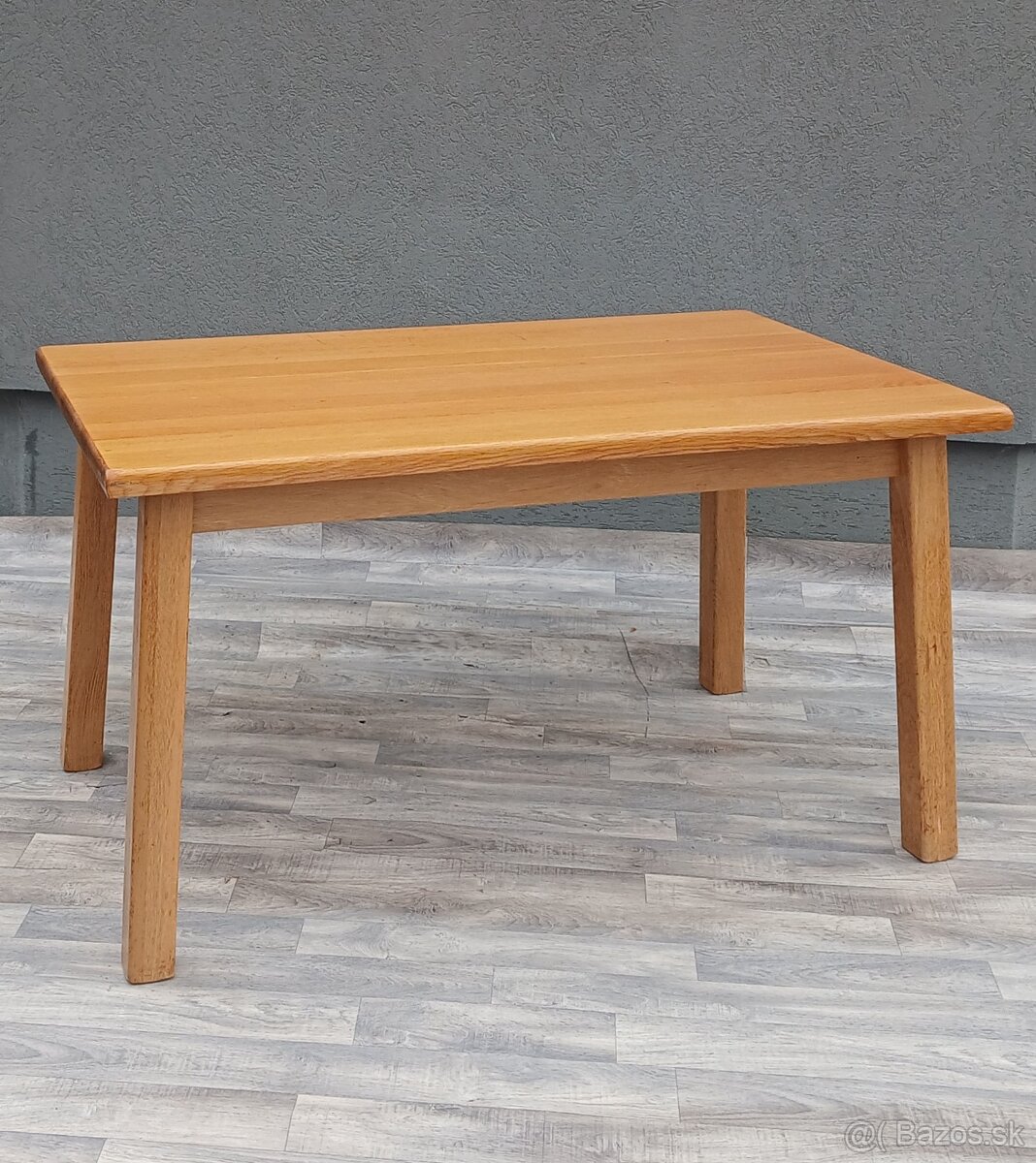 Tento jedálenský stôl z masívneho dubového dreva s lakovanou povrchovou úpravou zaručuje vysokú nosnosť a odolnosť. Má tradičný, jednoduchý dizajn s masívnymi nohami a obdĺžnikovou doskou.