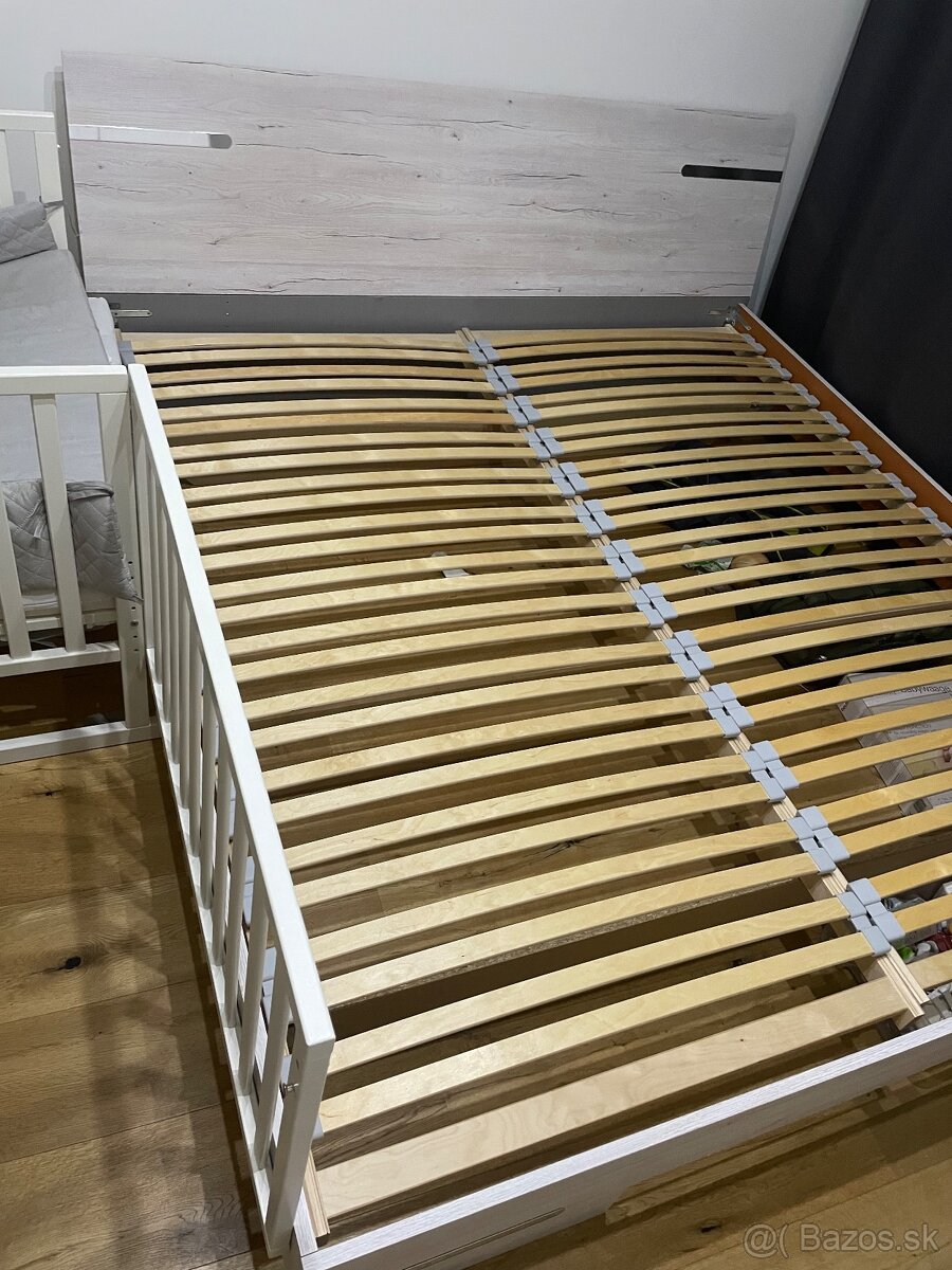 Predám manželskú posteľ 180x200 s dvomi roštami za cenu roštov,+ 2 nočné stolíky.