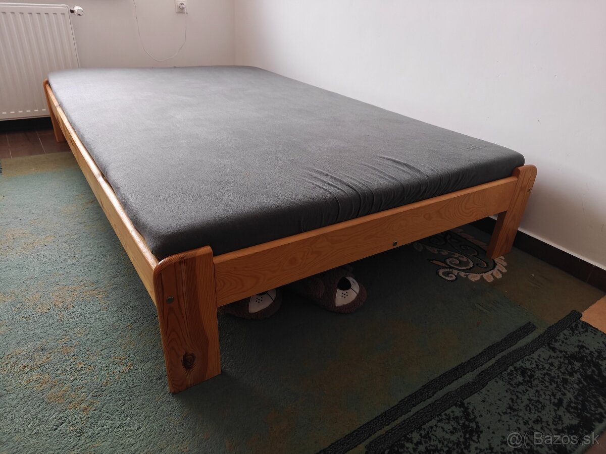Predám postel 140x200 - [11.2. 2026]Predám túto zachovalú manželskú postel rozmer je 140x200 v cene su aj dva nočné stoliky. Prípade záujmu viem pridať aj matrac za 40 e používanú asi asi nie rok. Pripadne záujmu viem pomôcť s dovozom. A mam aj na predaj jedálenský stôl skeneny plus 4 stoličky.