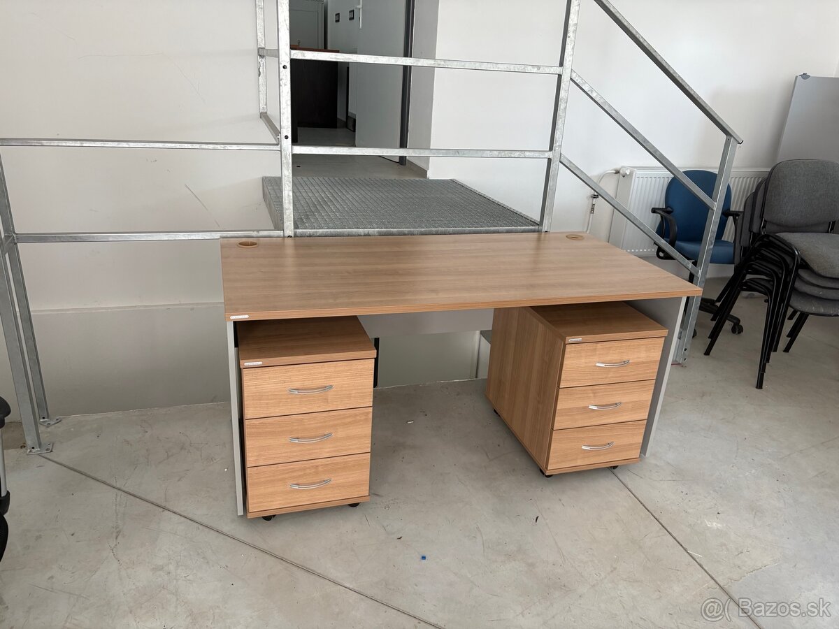 V ponuke je komplet set:stôl s čalúnenym paravanom,kontajner,komoda a kvalitná stolička zn.Haq.Kancelárske stoly majú posuvnu dosku,žľab na elektricke káble a možnosť aj výškovo nastavit.Komody s posuvnymi dv ...