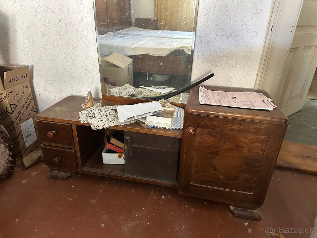 Predám starožitný nočný stolík a skrinku so zrkadlom