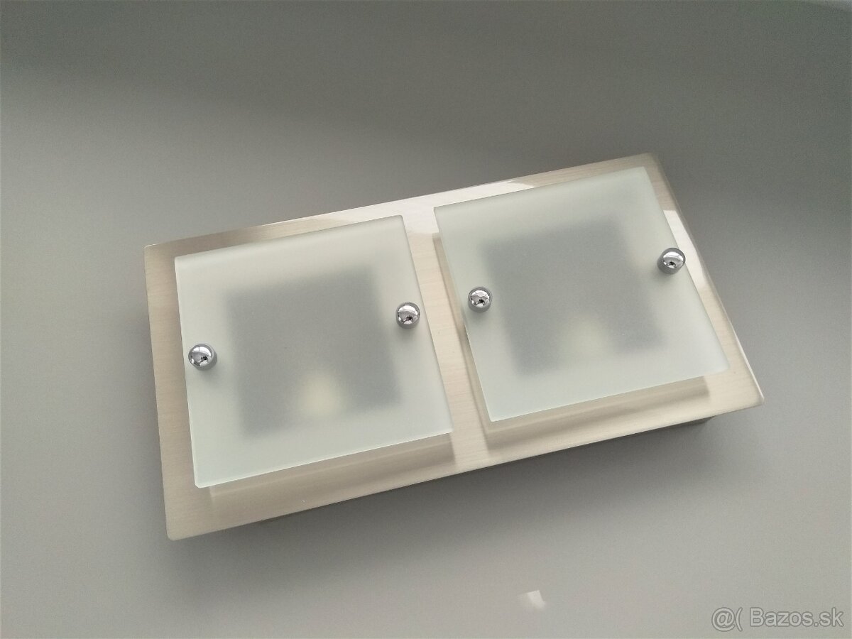 č.1 stropné svietidlo v top stave, rozmer je 13cm x 24,5cm, materiál nerez v kombinácii s mliečnym sklom - cena 15eur