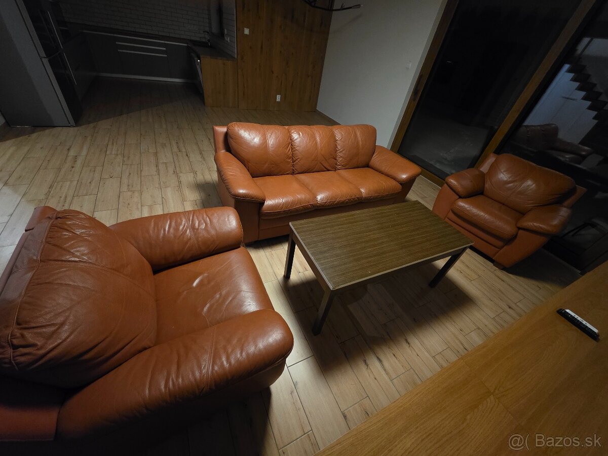 kožená sedacia súprava 3+1+1 - [10.2. 2026]Predám koženú sedaciu súpravu z pravej kože, pozostávajúcu z trojsedačky a dvoch kresiel. Konštrukcia je z masívu, sedenie je mäkké a veľmi pohodlné.