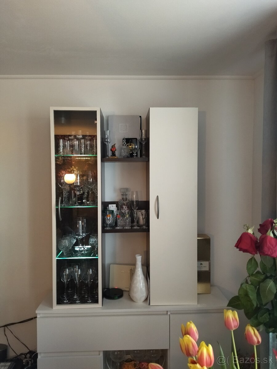Predám peknú, zachovalú obývaciu zostavu v dobrom stave.. skladá sa z 3 vysokych policovych skriniek, 2 šuflikovych skriniek a dvoch veľkých políc...