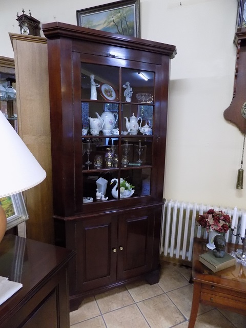 Ponúkam na predaj rohovú presklenú vitrínu z masívu - mahagón - elegantný kus nábytku.