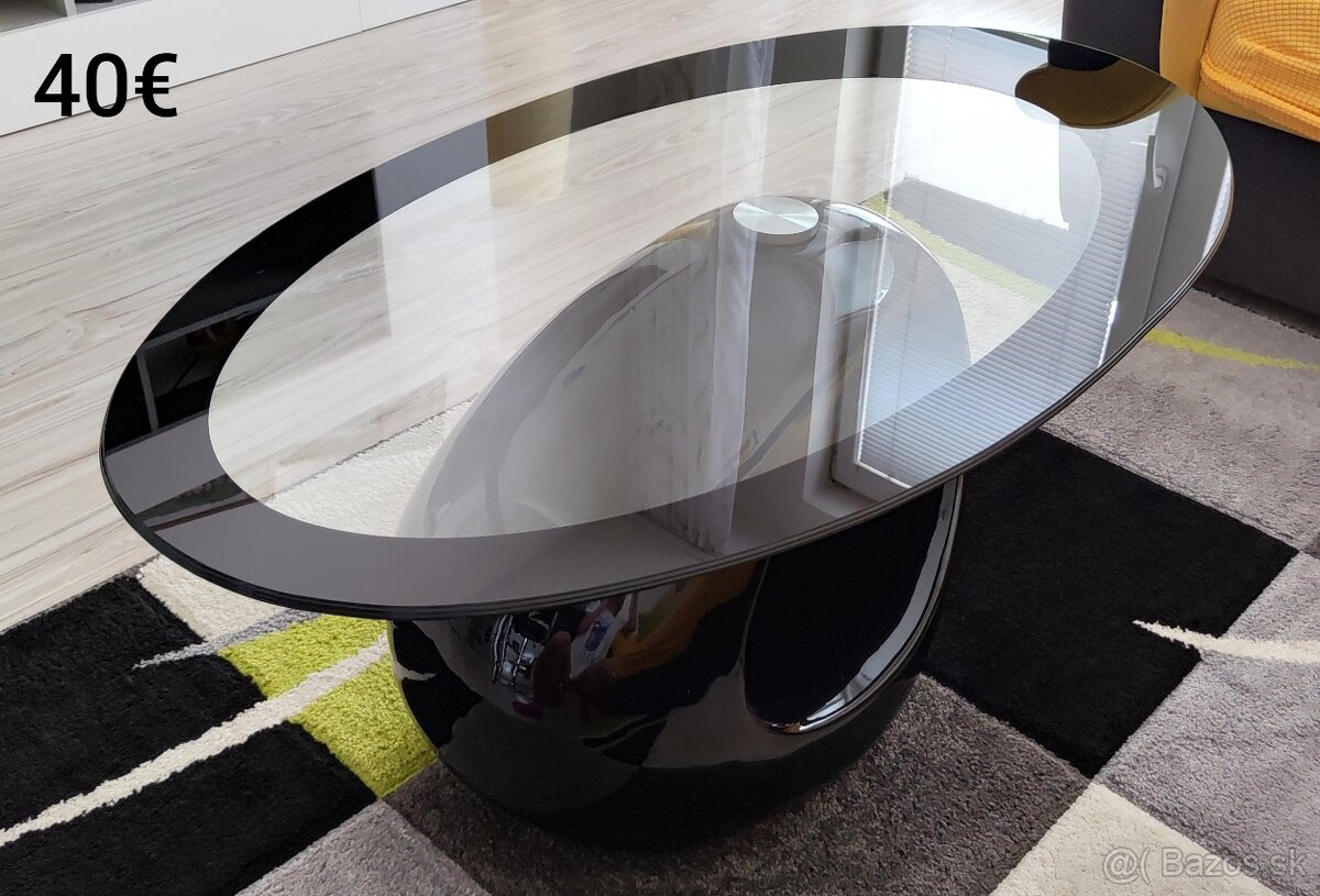 Predám stolík vo veľmi dobrom stave, vada na čiernej časti, viď foto, cena 40€. Miery: šírka okrúhlej sklenenej časti 109, dĺžka 59. Len osobný odber Košice, prosím píšte správu.Prosím nevolať, len písať!