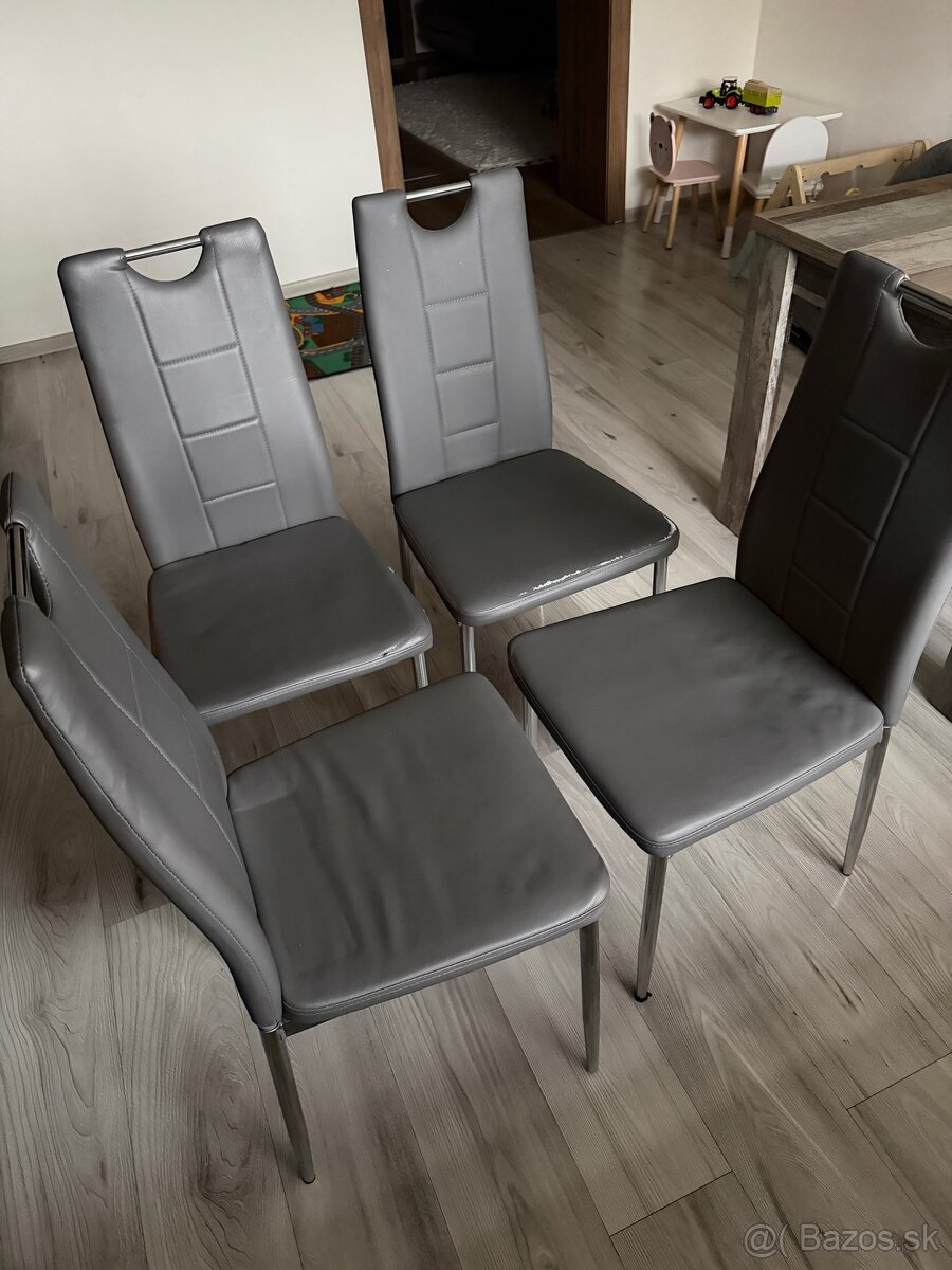 2 stoličky mame odložené v pivnici nepoužívali sme ich ( nevyberala som ich na fotenie) na 2 stoličkách je popukana kozenka, inak veľmi dobrý stav, možný dovoz okolie Ke a Tv , alebo osobný odber, cena spolu 60€ , farba: sivá , písať SMS alebo volať nie mailom! Ďakujem