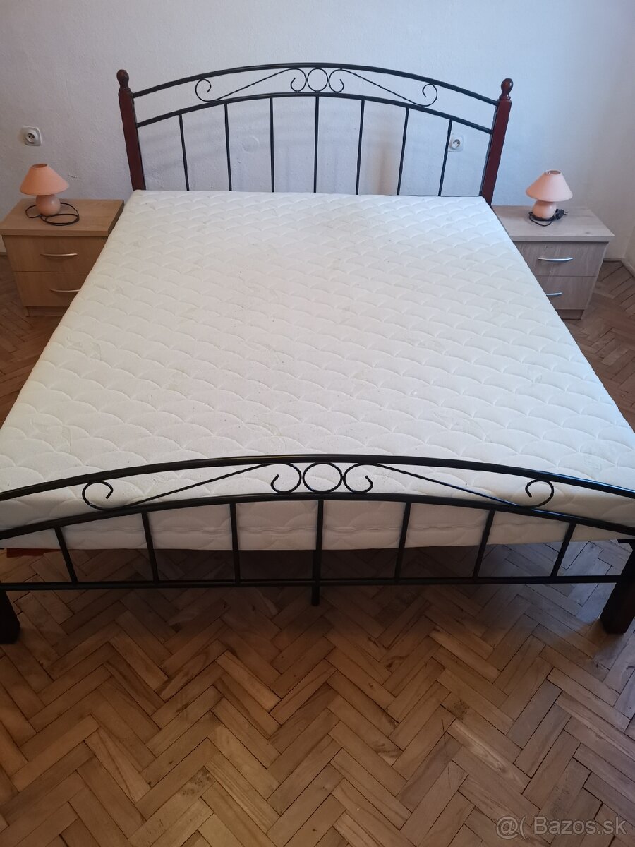 Predám kovovú manželskú posteľ 160cm s roštom, prevedenie čerešňa a penový matracom BENAB-OMEGA FLEX 200x160cm T3/T4, poťah Aloe Vera, všetko za 250€