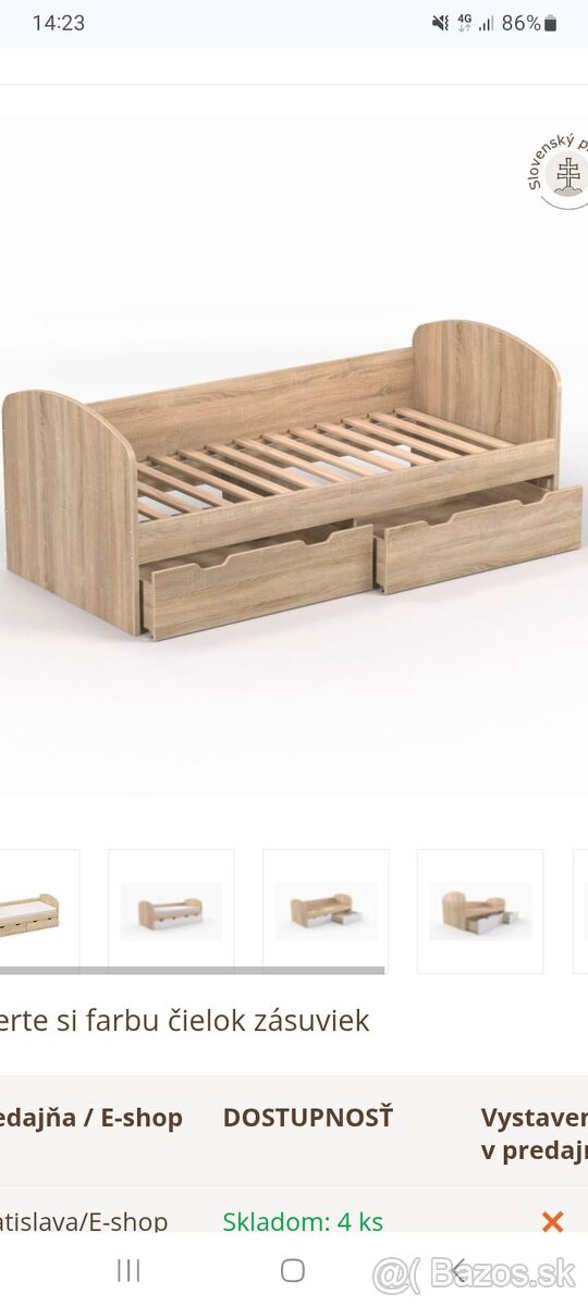Posteľ 90 x 200, borovica - [11.2. 2026]Predám posteľ z masívu (borovica), rozmer 90 x 200 cm, so zásuvkou (úložný priestor). Výborný stav.